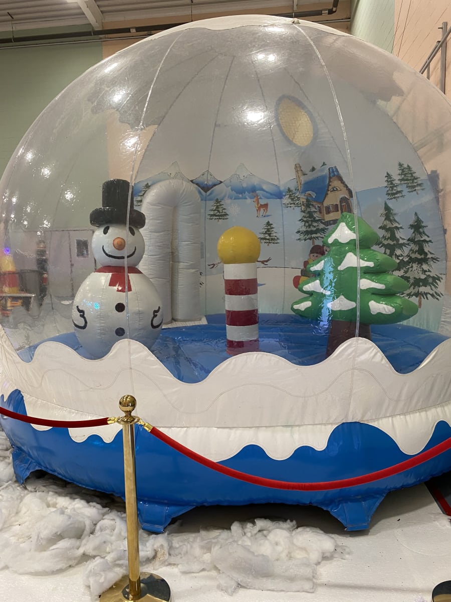 Schools, nurseries and corporate parties hire this giant-sized inflatable snow globe bouncy castle for all the family