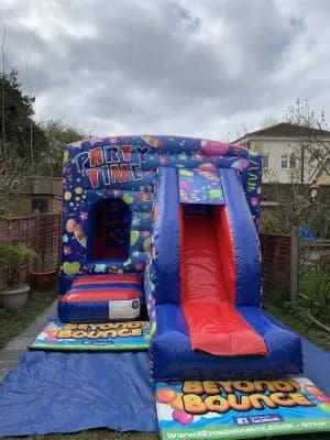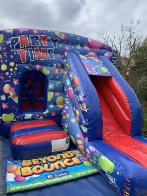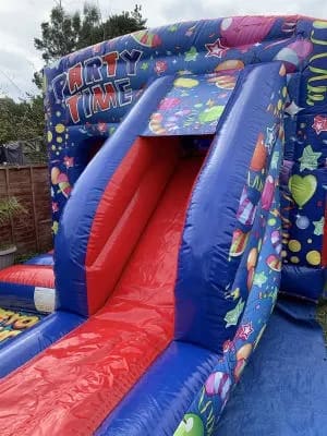 Party time front slide bouncy castle available to hire in Bexleyheath, Welling, Bexley, Dartford, Sidcup, Crayford, Erith and Surrounding Areas