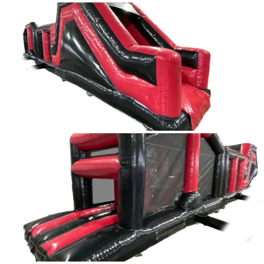 Get ready for non-stop action with our 50ft assault course hire, a bold and exciting inflatable designed in striking red, black and orange. Perfect for older children, teens and even adults, this high-energy inflatable is built for racing, competing and having fun from start to finish. With a long run packed full of obstacles and a thrilling 7ft slide at the end, it is guaranteed to be the highlight of any event.