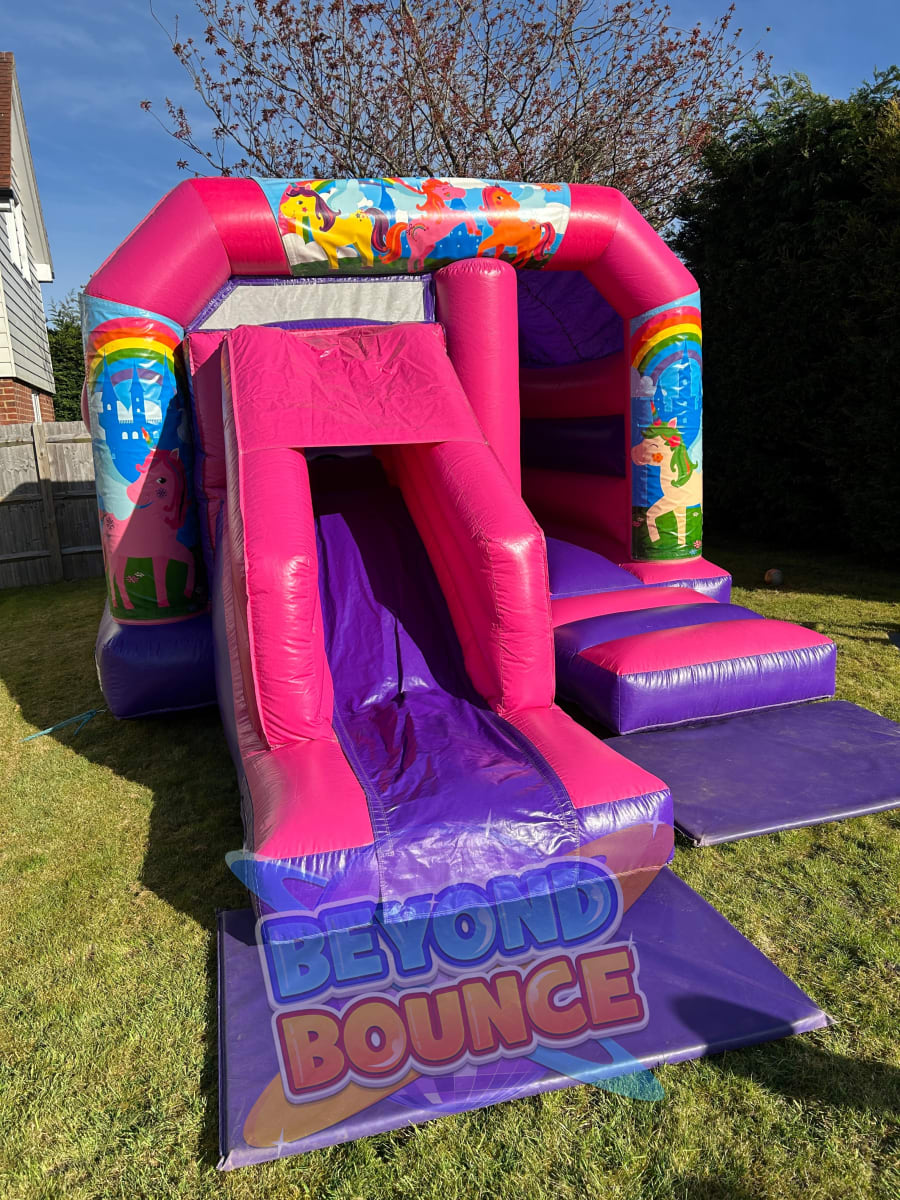 Bring a touch of magic to your event! Contact us now to book the Unicorn Front Slide Bouncy Castle and make your celebration unforgettable!