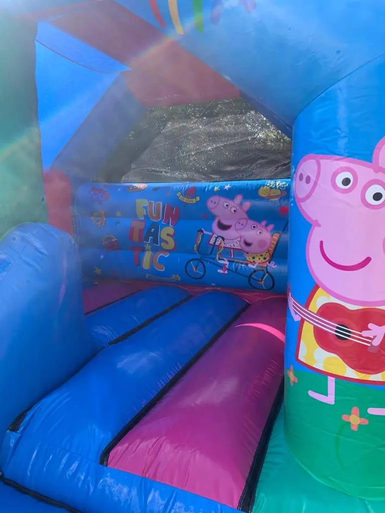 Genuinely a lovely bouncy castle with a colourful slide too. It was designed for toddlers and younger children who just love Peppa and friends but its made to handle all the family as well! Yes parents, grandparents, and siblings are welcome to jump and bounce at this family party too!