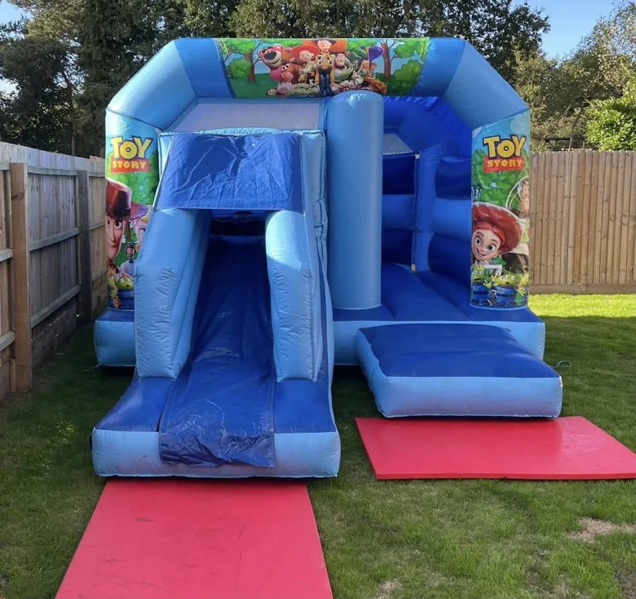 Take your party to infinity and beyond with our Toy Story Front Slide Bouncy Castle! This colourful inflatable stars Woody, Buzz Lightyear, Jessie and all their pals — perfect for sparking imagination, big grins and just the right amount of bouncy chaos. Ideal for birthday parties, school fairs, playdates and family celebrations, the front slide adds a cheeky extra thrill for kids who want a quick zoom after a bounce-off.