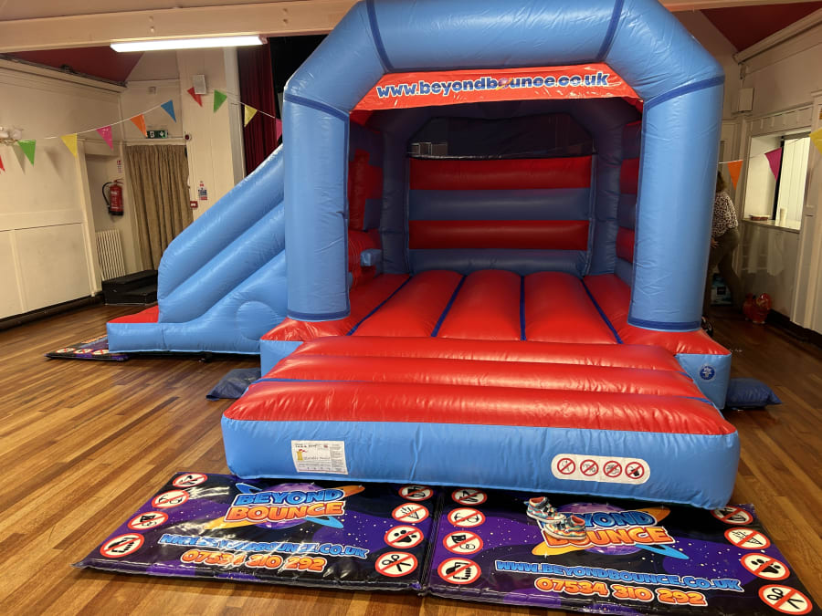 Pictured at Meopham Village Hall for a 4th birthday party, the unit handled 16 invited children with room to spare. That first hire proved the layout and slide work well for busy local events and community venues.