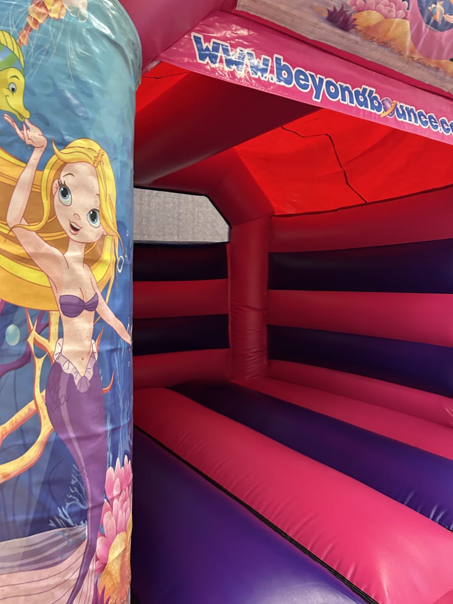 Make a splash at your next party with our beautiful mermaid bouncy castle hire.