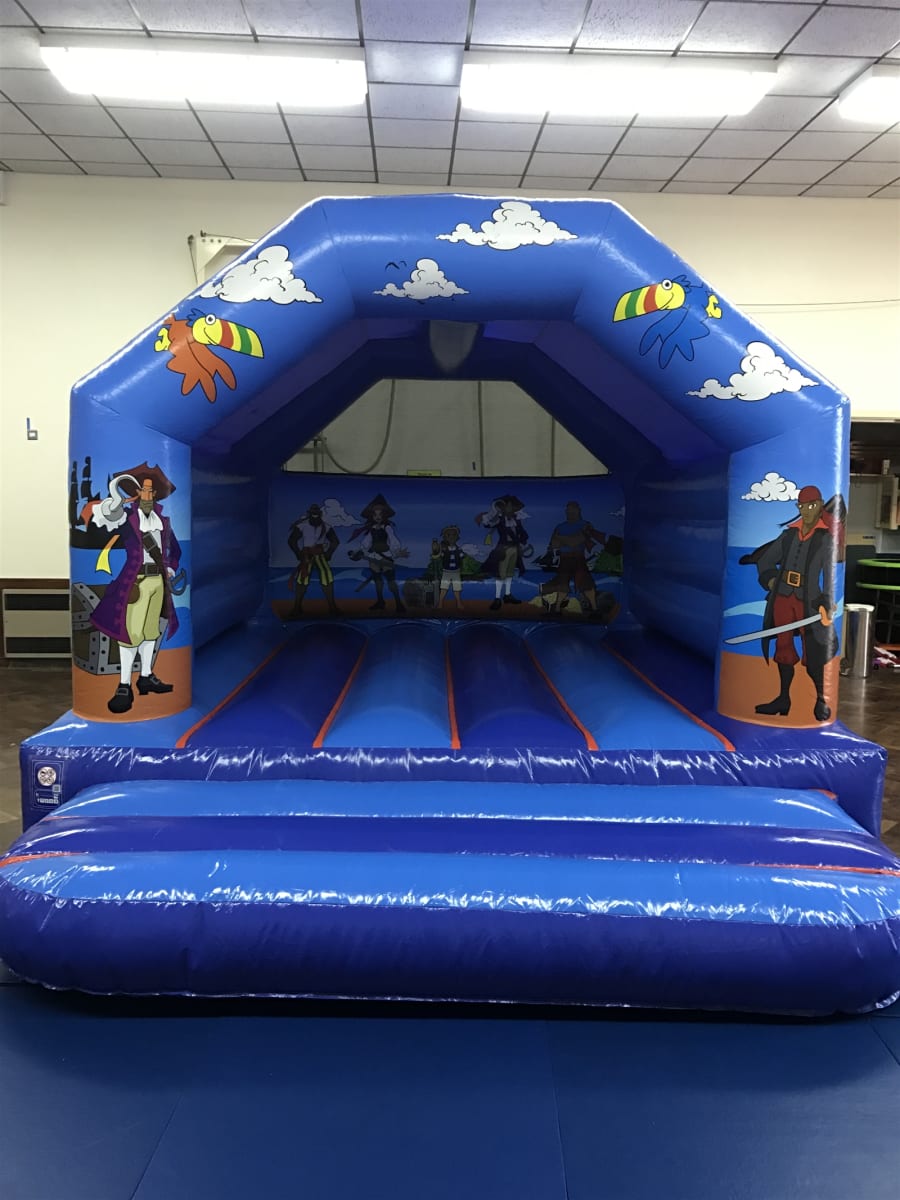This wonderful Pirate themed bouncy castle is perfect for boys and girls of all ages. The detailed pirate artwork, featuring swashbuckling scenes and treasure maps, will ignite their imaginations and set the stage for a day full of adventure.