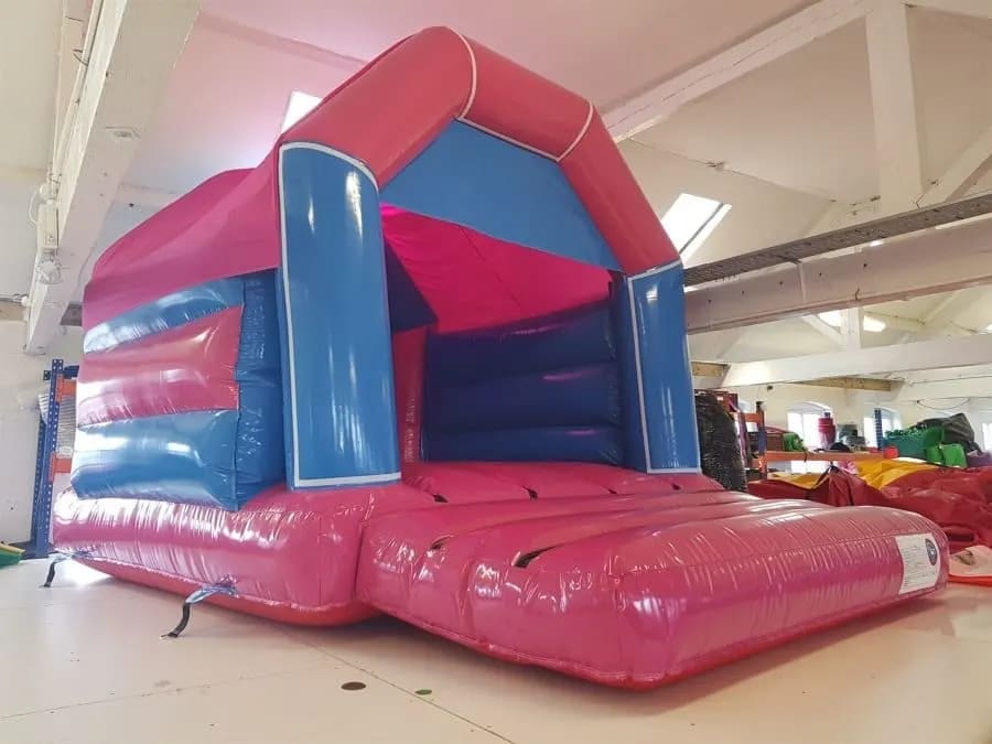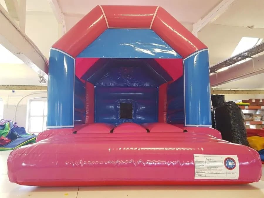 Gender Reveal Bouncy Castle Hire in Bexleyheath, Welling, Bexley, Dartford, Sidcup, Crayford, Erith and Surrounding Areas. This shiny pink bouncy castle is a show-stopper for birthdays and garden parties. It’s designed as a unisex inflatable that appeals to boys and girls. Ideal for up to 12 years old (school year 6). Fits standard UK gardens at 11ft wide by 15ft long. Perfect for families searching for bouncy castles for children or bouncy castles in Gravesend and nearby Kent and Bexley towns.