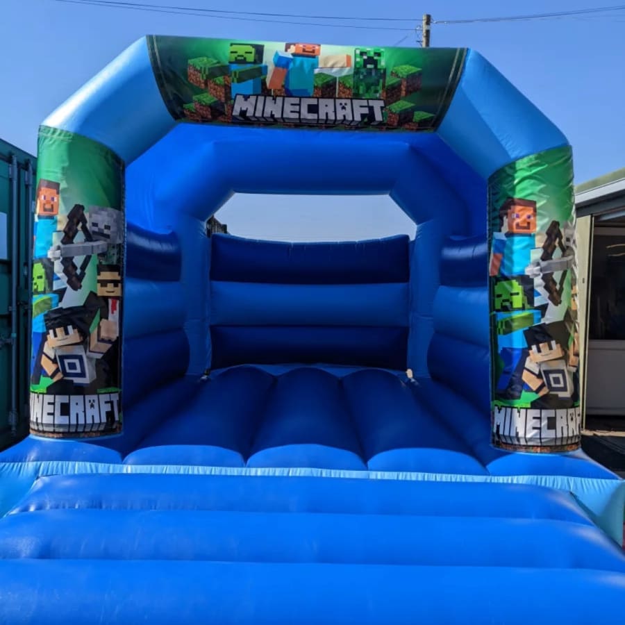 Our Minecraft themed bouncy castle, is perfect for young children, usually starting out in the gaming world just before they get to the Fortnite stage! This bouncy castle is of a standard size, great for back garden hires or inside a venue and can accommodate around 12 children at a time. Our bouncy castles use velcro artwork, which means you can choose any colour while still having the Minecraft theme, they are all super bouncy and fun filled for any occasion.