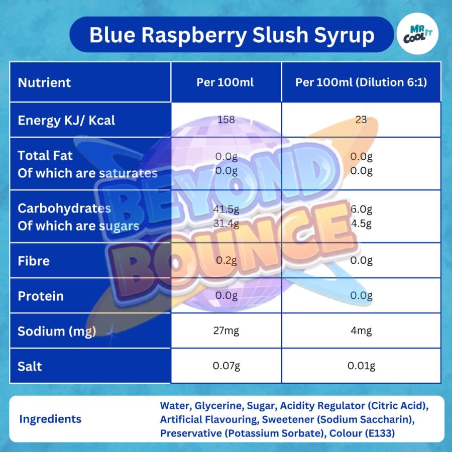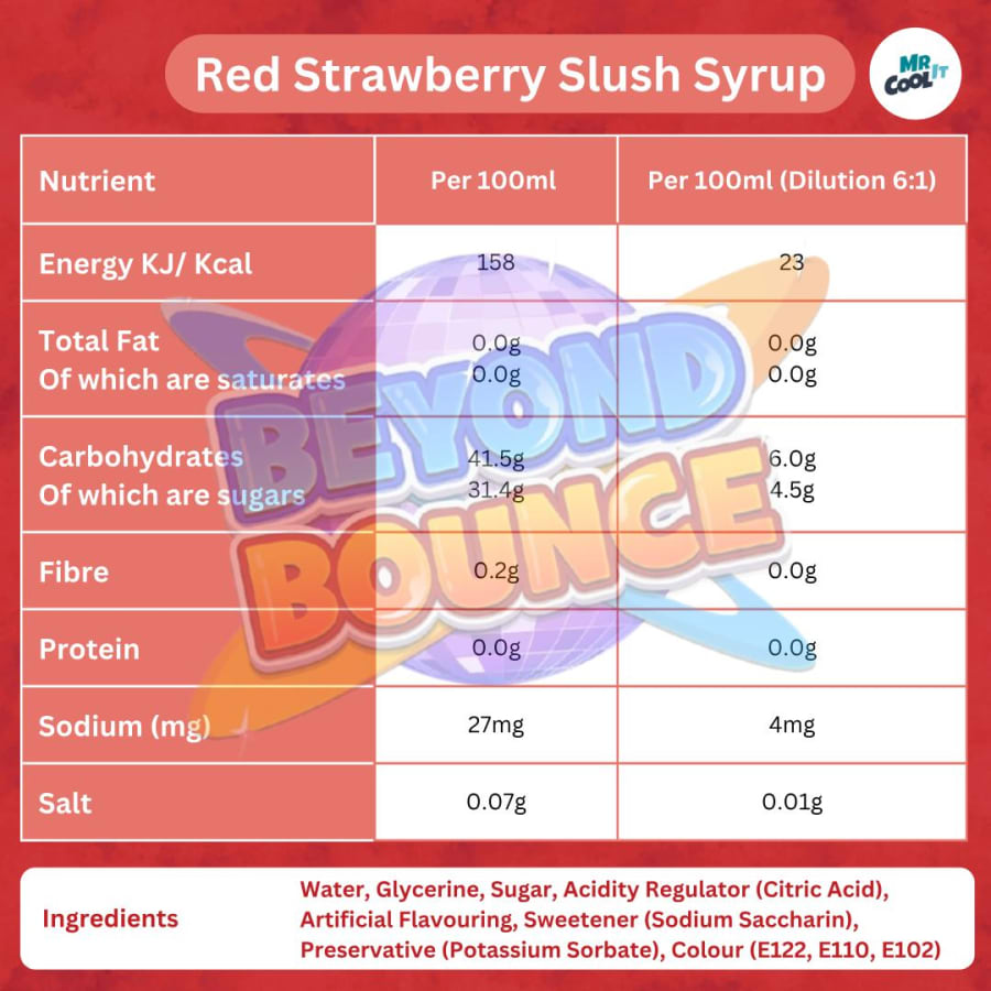 - 24 litres of slush: 12 litres of strawberry and 12 litres of blue raspberry