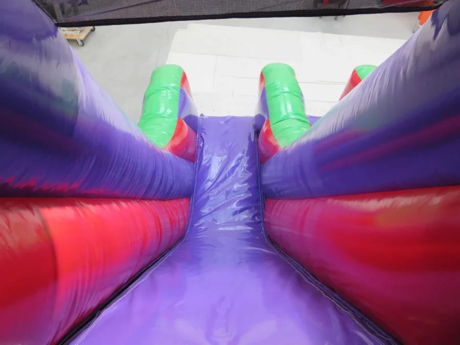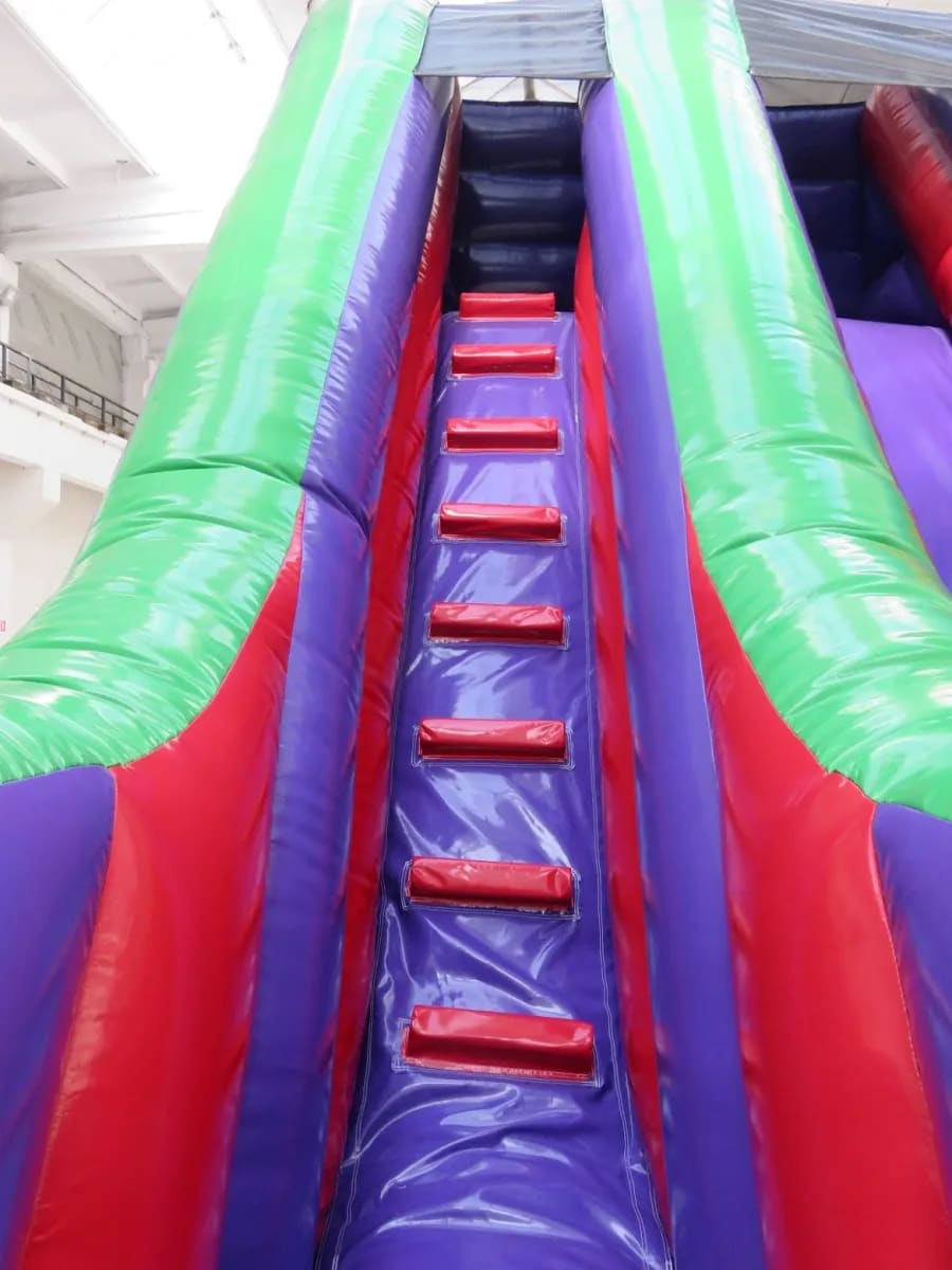 Q: Can it fit indoors? A: Sometimes — check your hall’s ceiling height against the 14ft slide height before booking.