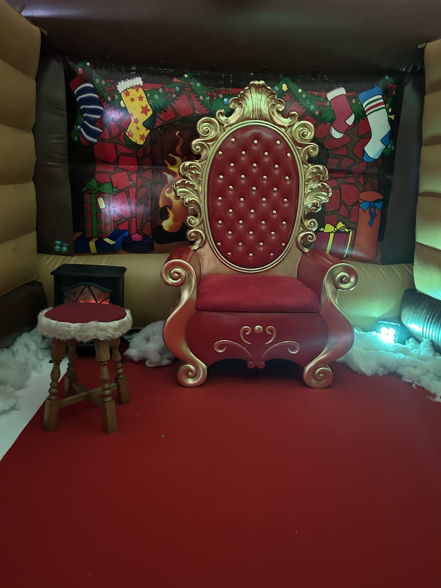 What started as a small festive hire quickly grew into a full Christmas package. Alongside bouncy castles and disco domes, we created a beautifully dressed Santa’s grotto complete with up lighters, artificial snow, a festive fireplace, and our impressive giant red throne. As a little thank-you for having us, we also supplied our Grinch costume free of charge, which was a huge hit with the children and staff alike.
